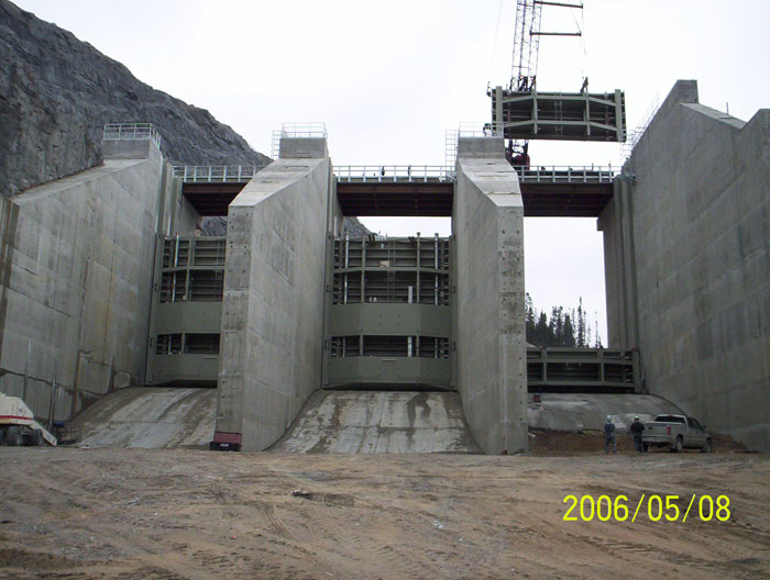 Conception, fabrication et installation de l'évacuateur de crues de la centrale Peribonka.